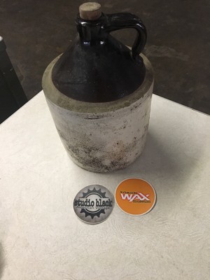 Primitive antique stoneware 5 gallon salt glazed crock lrg moonshine jug &handle.